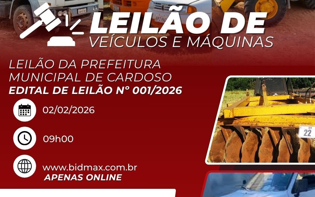 LEILÃO OFICIAL – PREFEITURA MUNICIPAL DE CARDOSO